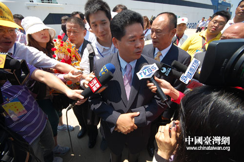 中國臺灣網5月15日莆田消息 “這是一個歷史時刻。”450位臺灣媽祖信徒今天早上乘坐客輪由臺中港直航湄洲進香,在客輪抵達的那一刻,臺灣媽祖聯誼會會長鄭銘坤直稱高興。