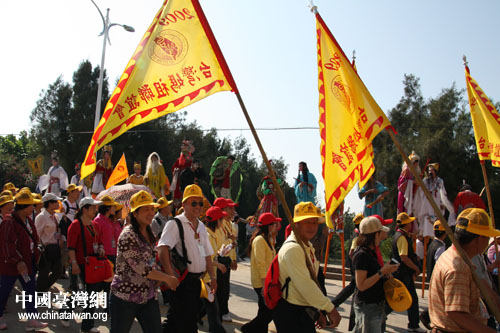 圖為今天抵達湄洲的臺灣媽祖信眾。(中國臺灣網記者 張弛 攝)