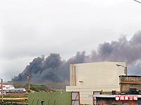 臺電核三廠啟動變壓器爆炸失火,廠區濃煙竄天際。來源:臺灣《蘋果日報》