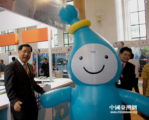 走進(jìn)臺(tái)灣館,第一個(gè)看到的就是高雄市展臺(tái)。作為2009世界運(yùn)動(dòng)會(huì)主辦城市的高雄,今天特地來到北京參加國(guó)際旅游博覽會(huì)。高雄市政府觀光局局長(zhǎng)林昆山還跟世運(yùn)會(huì)吉祥物一道發(fā)出熱情的邀請(qǐng):高雄熱忱友善地歡迎好朋友們到高雄來。