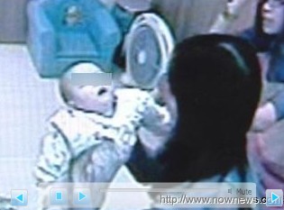 孩子母親把調(diào)閱來的監(jiān)視器錄像傳至博客,顯示保姆讓嬰兒趴睡窒息,育嬰室竟長達(dá)40分鐘沒有大人在。圖為監(jiān)視器畫面翻拍。圖片來源:臺灣“今日新聞”