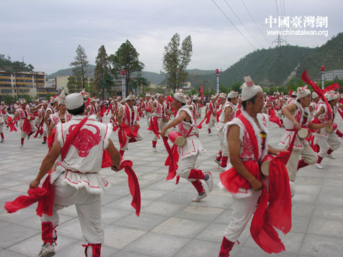 腰鼓隊伍陣勢強大 (中國臺灣網 蕪同 攝)