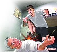 沈弘隆酒后向父親要錢不成,惱羞成怒將父親推倒在地,狠踹父親肚子十多腳。(來源:臺灣《蘋果日報》)