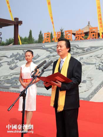河北省政協副主席王剛宣布“冀臺同胞共祭三祖大典開始”。(中國臺灣網 鐘寶華 攝)