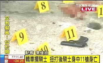 中國臺灣網11月24日消息 據臺灣“今日新聞網”報道,昨天臺南市鬧區發生了震驚社會的7700萬新臺幣搶案;今天上午7時多,在臺南縣永康市、人來人往的超商外,又發生街頭槍殺事件。一名38歲的洪姓男子被3名歹徒持槍在大街上,猶如行刑處決般被連開11槍。