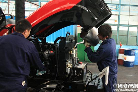 一臺新型拖拉機完成組裝(中國臺灣網 徐維彬 攝)