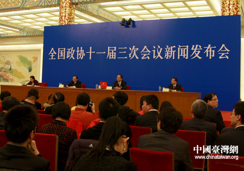 今天下午三點,全國政協十一屆三次會議在人民大會堂金色大廳召開首場新聞發布會。(中國臺灣網 高斯斯 攝)