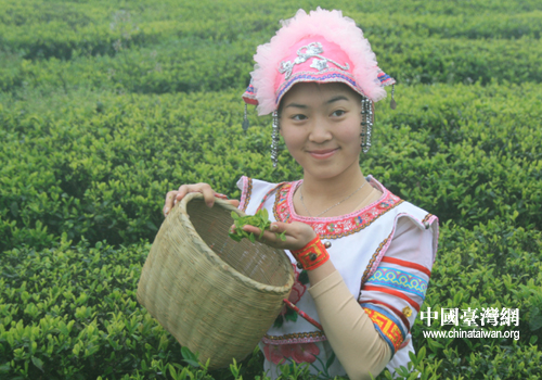 勤勞美麗的采茶姑娘,纖手與茶枝舞蹈,花籃同茶芽爭香。(中國臺灣網 李丹 攝)