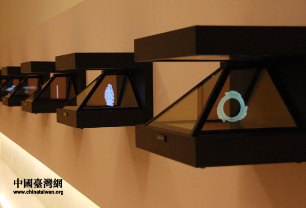 震旦館內,以全息影像展示各種傳統玉器。(中國臺灣網 鐘寶華 攝)