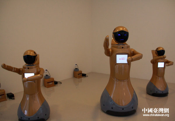 臺灣震旦企業(yè)館不僅展示玉文化,還展示了3個機器人“震旦小子”。(中國臺灣網(wǎng) 鐘寶華 攝)