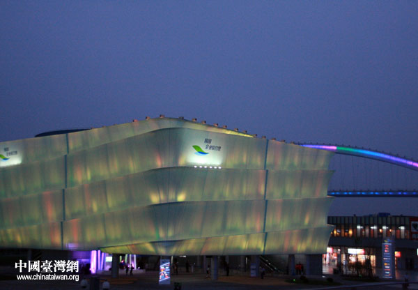 夜色下的韓國企業(yè)聯(lián)合館。(中國臺灣網(wǎng) 鐘寶華 攝)