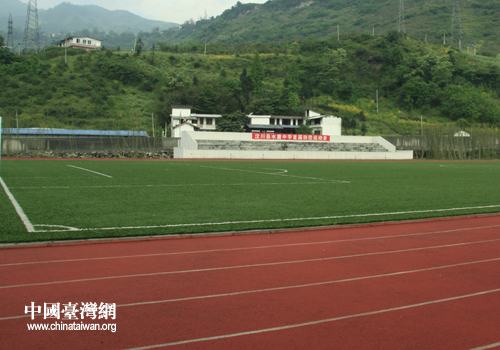 汶川縣水磨中學的塑膠跑道操場。(中國臺灣網 高斯斯 攝)