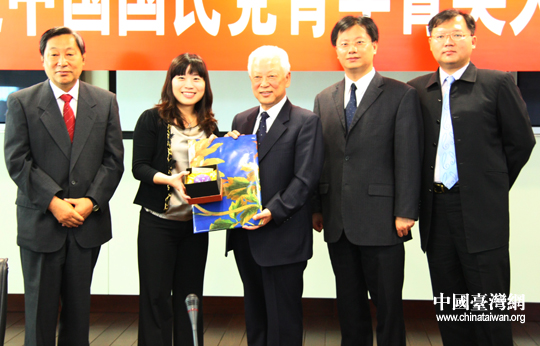 “中國國民黨青年菁英大陸參訪團”向民革中央贈送紀念品(中國臺灣網 孫金誠 攝)