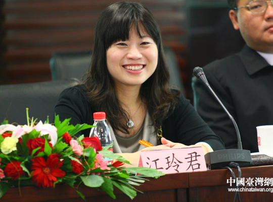 “中國國民黨青年菁英大陸參訪團”團長江玲君發言(中國臺灣網 孫金誠 攝