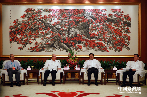7月9日,中共中央政治局常委、全國政協主席賈慶林在廣州會見中國國民黨榮譽主席吳伯雄及應邀參加第六屆兩岸經貿文化論壇的兩岸各界人士。(中國臺灣網 鐘寶華 攝)