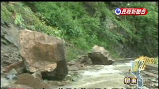 屏東霧臺臺24線落石坍方造成道路中斷。圖片來源:臺灣“民視新聞”