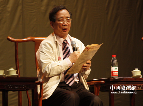 中國臺灣網9月17日北京消息 “漢字對中華文化的作用,怎么說也不過分”、“為遺產分家打官司是最讓人瞧不起的”、“方言不懂沒關系,我們有方塊字,彼此就不會陌生”……今天上午,一串串妙語連珠,從中國藝術研究院劇場傳出,古色古香的中式座椅上,端坐著4位來自兩岸的“大家”——許嘉璐、林谷芳、田青、黃光男。首屆兩岸漢字藝術節的“開卷·漢字:高校漢字藝術講座”系列活動在此拉開帷幕,今天的主題是“漢字與中華文化”,4位“大家”的發言不止關乎專業,許多親身親歷的小故事尤其精彩,在博得大家會心一笑的同時,每一個人對“方塊字”的深情亦令人動容。