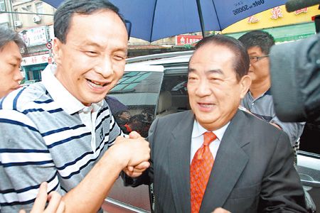 中國臺灣網10月21日消息 據臺灣《中國時報》報道,比起對臺灣“五都”(臺北縣升格后的新北市、臺北市、縣市合并后的大臺中市、大臺南市和大高雄市)選舉中國民黨其他選將的態度,親民黨主席宋楚瑜對新北市長候選人朱立倫明顯親疏有別。朱立倫20日表示,他和宋楚瑜有默契,到11月27日投票前,宋會在適當時機、適當場合為他加油。