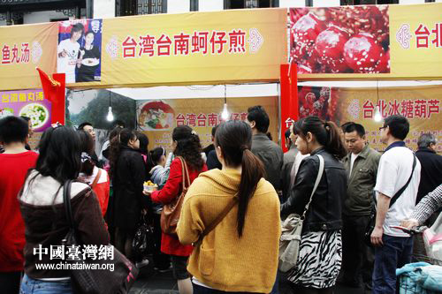 中國(guó)臺(tái)灣網(wǎng)10月24日成都消息 作為最貼近市民生活的西博會(huì)主題活動(dòng)之一,成都“臺(tái)灣美食節(jié)”自21日開幕以來(lái),已吸引數(shù)萬(wàn)名成都市民聞?dòng)嵍鴣?lái),品嘗正宗的寶島特色小吃。今天,本網(wǎng)記者也來(lái)到成都著名的小吃街文殊坊,親眼見證臺(tái)灣美食節(jié)的熱鬧場(chǎng)面。