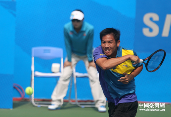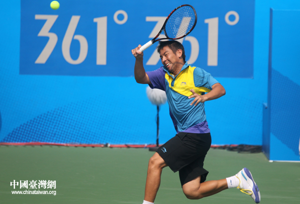 楊宗樺積極奔跑回球。(中國臺灣網 鐘寶華 攝)