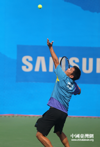 楊宗樺奮力發球。(中國臺灣網 鐘寶華 攝)