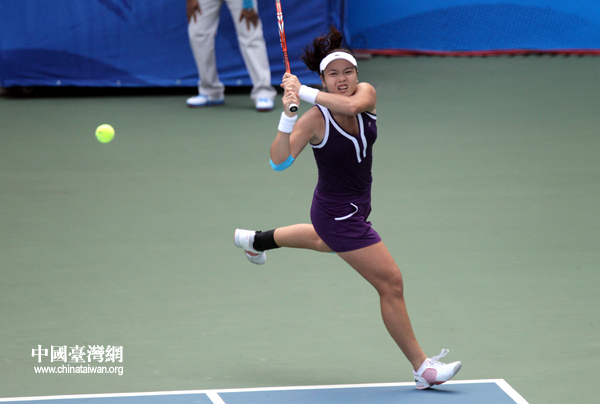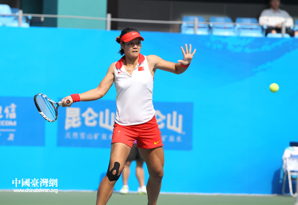 臺灣網壇“一姐”詹詠然在比賽中。(中國臺灣網 鐘寶華 攝)