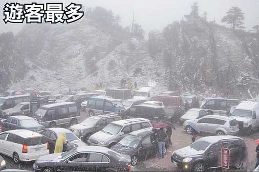大批游客涌上合歡山賞雪,車輛把武嶺停車場塞爆。圖片來自網絡