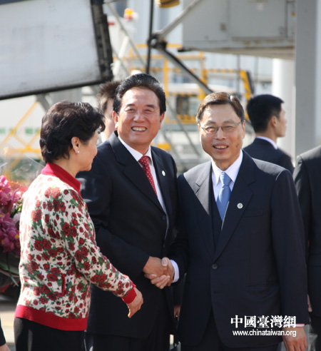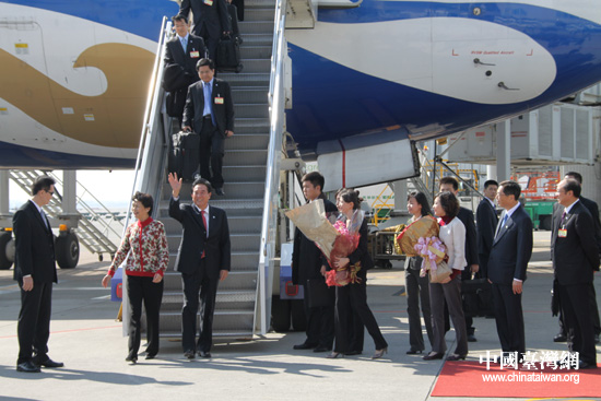 20日中午,由海協會會長陳云林率領的海協會協商代表團乘坐國航CA185次航班順利抵達臺北桃園機場,參加將于21日上午舉行的兩會領導人第六次會談。 (中國臺灣網 鐘寶華 攝)