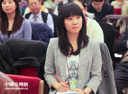 中國政協(xié)報記者在發(fā)布會現(xiàn)場向趙啟正提問。(中國臺灣網(wǎng) 陳佳慧 攝)