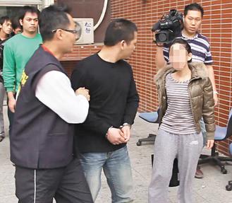 楊姓男子被警方解送時,還一度跟妻子發生口角,兩邊的警察忙勸架。圖片來源:臺灣《聯合報》