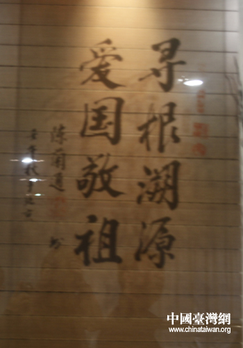 臺(tái)灣高雄市長陳菊參觀根親文化博物館時(shí)的題詞(中國臺(tái)灣網(wǎng) 吳捷 攝)