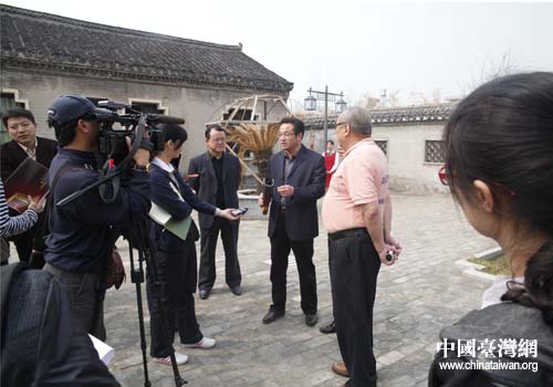 參觀陳氏將軍祠,臺(tái)灣《大愛電視臺(tái)》欄目組特邀祠堂負(fù)責(zé)人與臺(tái)灣政風(fēng)新聞電子報(bào)岳先生分別用固始土話與客家話對(duì)從單字到詞到句依次進(jìn)行了對(duì)比讀說(中國臺(tái)灣網(wǎng) 吳捷 攝)