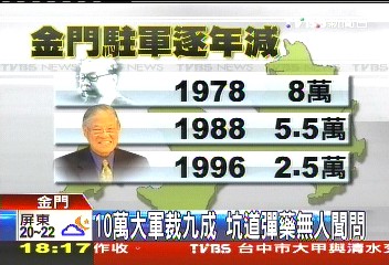 臺媒稱,或許是“巧婦難為無米之炊”,因為金門駐軍從全盛時期號稱的10萬大軍,到蔣經(jīng)國時期裁減到8萬,再到李登輝時期砍到5.5萬人,2007年縮減到2.5萬人,現(xiàn)在金門的守軍只剩1萬不到。