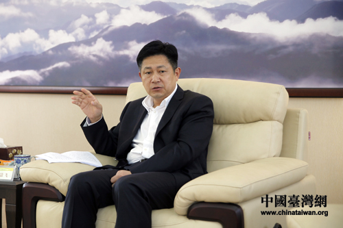 4月21日上午,麗水市慶元縣委書記陳景飛接受了“相約麗水——全國網(wǎng)絡(luò)媒體麗水行”記者的集體采訪。(中國臺(tái)灣網(wǎng) 王偉 攝)