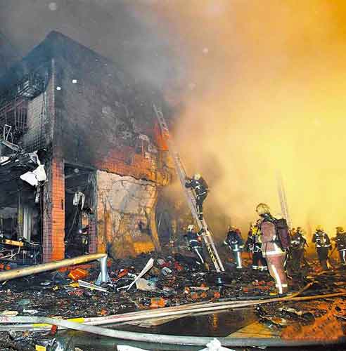 新興堂香鋪昨晚發生爆炸,現場幾乎被炸成廢墟,上百名警消到場滅火搶救。圖片來自網絡