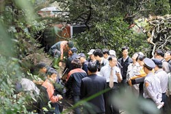 嘉義地檢署檢察官除了確認肇事樹種為森氏櫟外,檢方與林業專家還檢查倒伏鐵軌的樹干斷面,判斷腐朽程度與范圍。圖片來源:臺灣《中國時報》