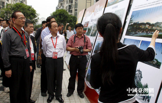 今天下午,國民黨副主席林豐正,新黨主席郁慕明以及前來參加兩岸經貿文化論壇的多位臺灣嘉賓代表參訪了由臺灣同胞在都江堰市出資捐建的“臺灣愛心家園”。(中國臺灣網 高斯斯 攝)