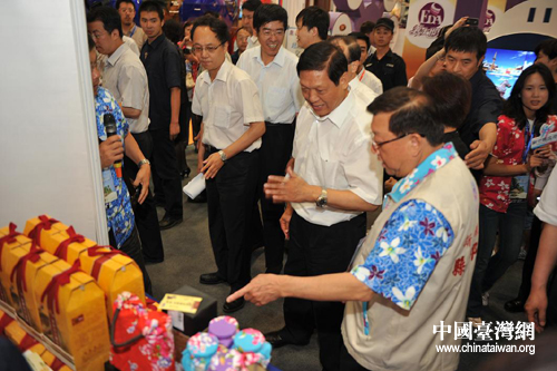 臺灣新竹縣縣長邱鏡淳向北京市領導介紹臺灣旅游產品(圖片來源:北京市臺辦)