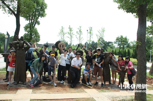 兩岸大學生在中山艦博物館外雕像前合影(中國臺灣網 李丹 攝)