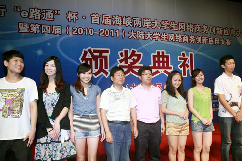 中國臺灣網7月28日北京消息 經過緊張的初賽、復賽和分賽區決賽,由中國互聯網協會和中國臺灣網共同主辦,中國建設銀行主協辦的建行“e路通”杯首屆海峽兩岸大學生網絡商務創新應用大賽暨第四屆大陸大學生網絡商務創新應用大賽大陸賽區總決賽頒獎典禮今天上午在北京交通大學隆重舉行,來自西安郵電學院的“隨風E起沖”團隊憑借完善的方案、充分的實踐成果、出色的現場表現一路過關斬將勇奪本科組桂冠!本網記者在頒獎現場對“隨風E起沖”團隊進行了采訪。