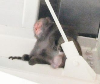 這只獼猴大鬧三小時后,圍捕人員射出四支麻醉箭,獼猴中箭跌落高鐵車廂上。(圖片來源:臺灣《聯合報》)