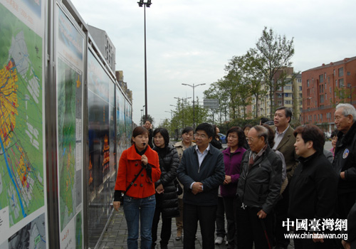 考察團一行在認真地聽講解員講解相關情況(圖片來源:上海市臺聯)