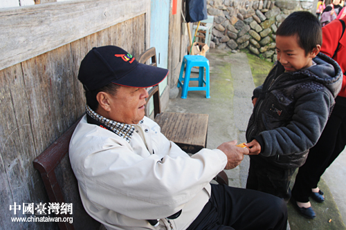 當地小朋友將自己的糖送給臺灣來的客人。(中國臺灣網 劉承思 攝)