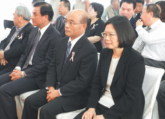蔡英文(右前一)和蘇貞昌(右前二)昨在前“立委”謝明源父親公祭上會面,但兩人甚少互動,比鄰而坐也未交談。(圖片來自網(wǎng)絡(luò))