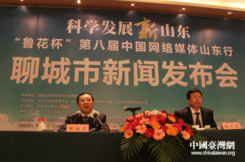 “科學發展新山東——第八屆中國網絡媒體山東行”聊城市新聞發布會現場。(中國臺灣網 郭瑩瑩 攝)