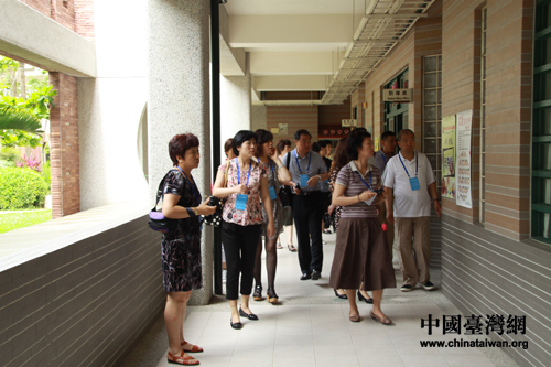 5月28日下午,“大陸優秀教育工作者交流團”一行參觀臺南市安平區億載小學。(中國臺灣網 李丹 攝)
