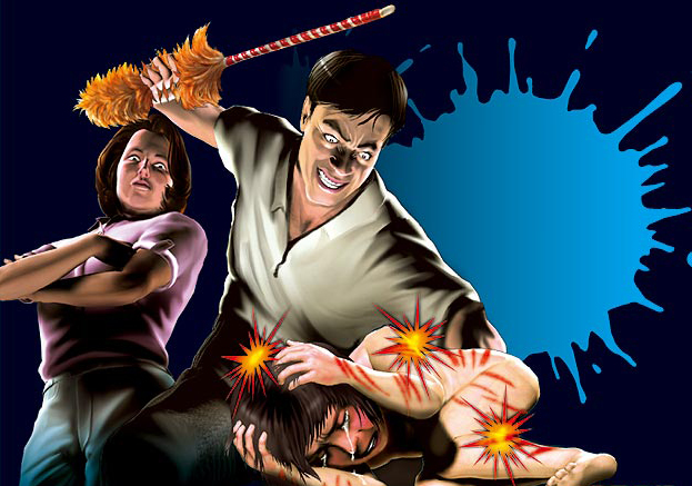 何姓男子不滿女兒尿褲子哭鬧,拿雞毛撣子毒打女兒1個月,何妻冷血旁觀。(圖片來自臺媒)