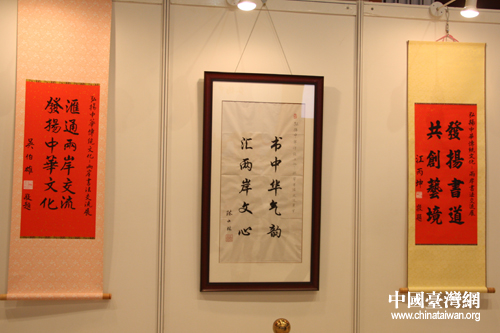 海協(xié)會會長陳云林、國民黨榮譽(yù)主席吳伯雄和海基會董事長江丙坤特地為本展覽給予題詞祝賀。(中國臺灣網(wǎng) 陳寧 攝)