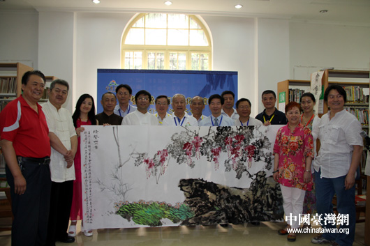 兩岸書畫家合影留念。(中國臺灣網(wǎng) 芮益芳 攝)