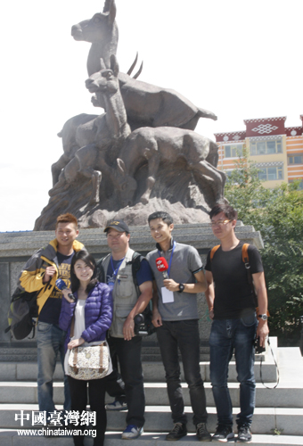 臺灣媒體在可可西里保護區管理局前合影留念(中共臺灣網 陳寧 攝)
